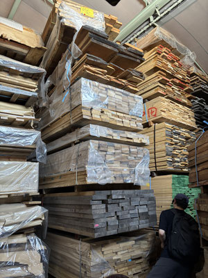 実際に材木が並んでいる倉庫に入ると、産地の異なるもの、木目が異なるもの、質感が異なるもの、色味が異なるものなど、多種多様な木材がずらりと並んでいて圧倒されました。普段は写真などでしか見ない木材を、実際に触れられて比べられる貴重な体験になりました。