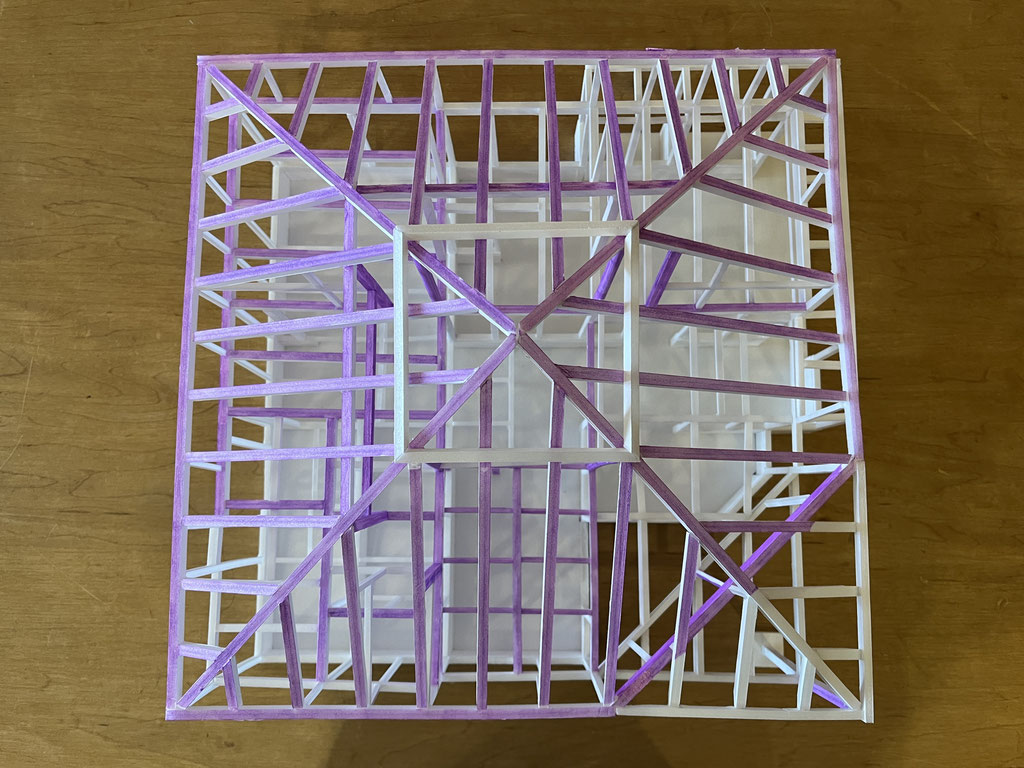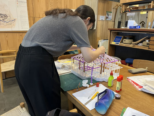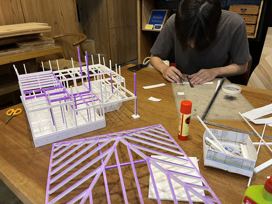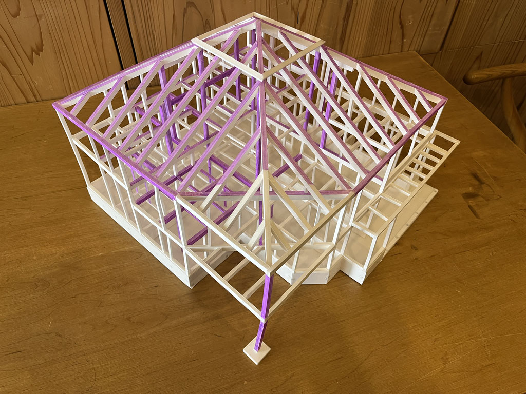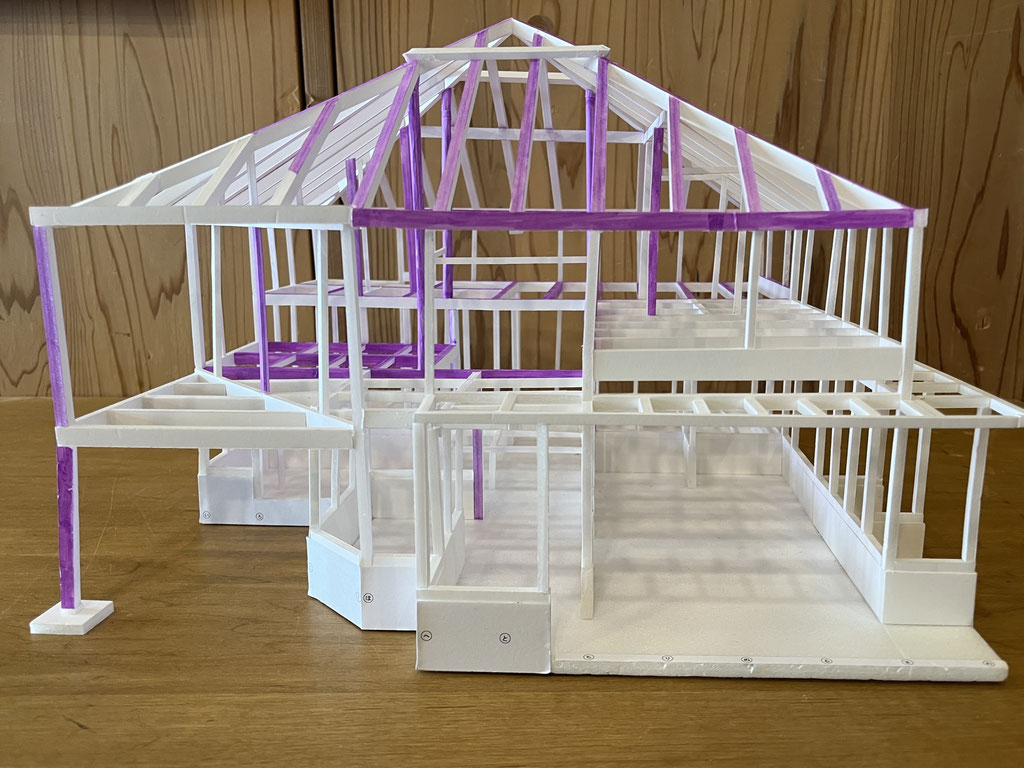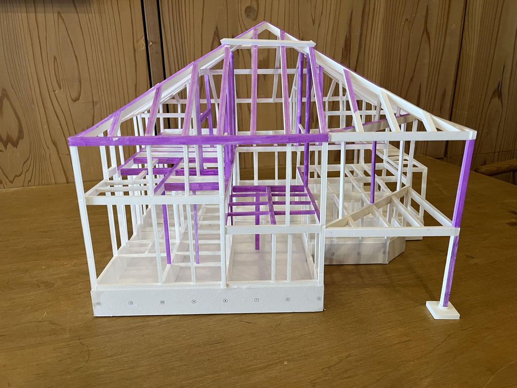 学生の頃は軸組模型を作った経験がなかったので、最初は図面を立体に組み替えるのに苦戦しました。