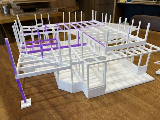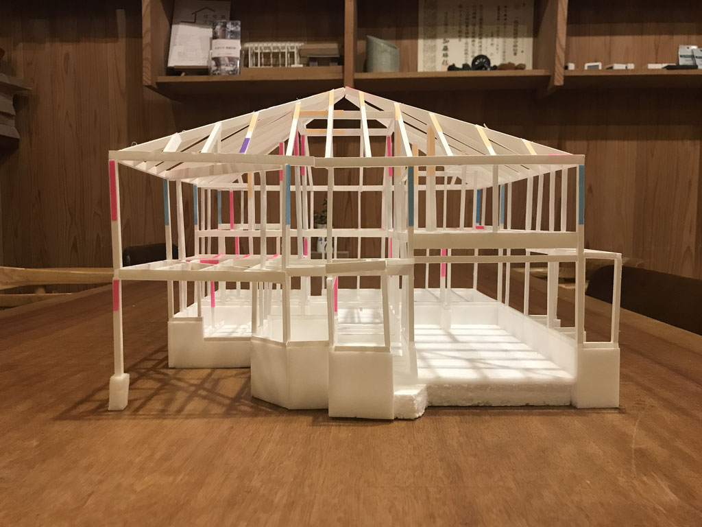 打ち合わせで金物の検討などをスムーズに進めるために軸組模型を作りました。